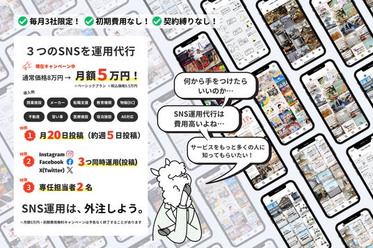 SNS運用は、外注しよう。月額5万円で月最大20日投稿のSNS運用代行サービス「アルパカSNS」のサービス内容がバージョンアップ(新プランに変更)しました!(ショート動画プランも追加)