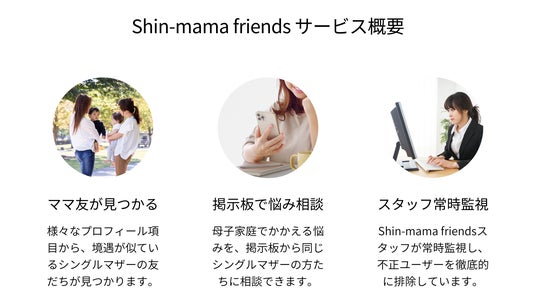上記のような特徴を兼ね備えており、友だち探し・母子家庭でのお悩み解決を応援します。