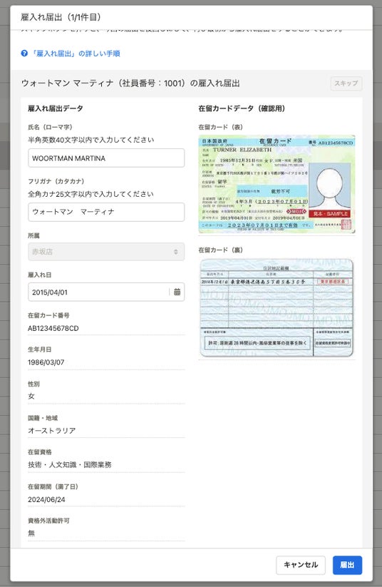 また、クラウド人事労務ソフト「SmartHR」とのデータ連携が可能です。「SmartHR」に登録されている従業員情報が「AIRVISA」に自動で取り込まれるため、入力の手間を省くことができます。