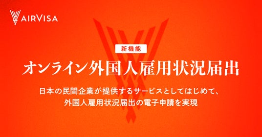 株式会社AIRVISA(本社:東京都港区、代表取締役CEO:ジャファー アフメット)が運営する外国籍従業員ビザ管理・申請クラウドソフト「AIRVISA(エアビザ)」は、「オンライン外国人雇用状況届出」機能を提供いたします。