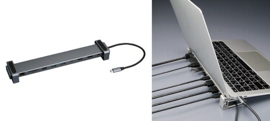 - 10ポートを搭載したドッキングステーションとノートPCスタンドが1つにまとまる