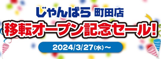 2015年10月のオープン以来、多くのお客様にご愛顧いただきましたじゃんぱら町田店は、店舗を移転することで装いも新たに再スタートいたします。