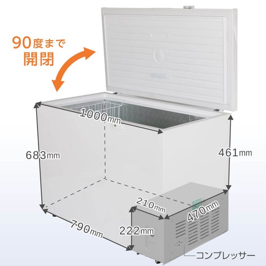 冷却により発生する冷気は、温かい空気よりも密度が高い為、下へ逃げる特性があります。その為、上開き式を採用している本製品は、扉を開けても庫内の温度が上がりにくく、保存している食品を効率よく冷やします。