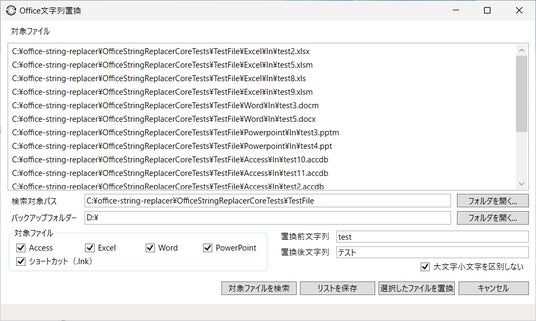 OfficeStringReplacer は、ファイル内の文字列を検索・置換するツールです。