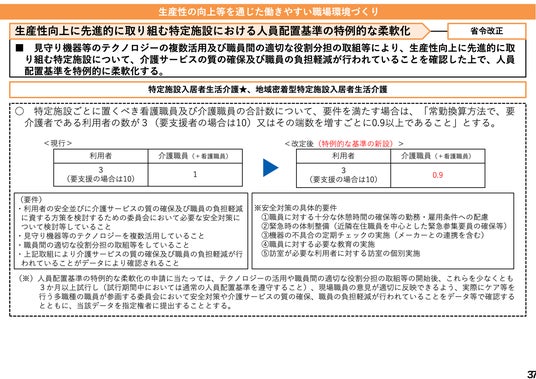 このような状況を受けて、厚生労働省は、介護サービス事業所の業務改善を後押しするべく、令和6年度介護報酬改定により、1年に1回、業務改善の取り組みによる効果を示すデータの提供を行う介護事業者に対して、生産性向上推進体制加算や特定施設における人員配置基準の特例的な柔軟化(利用者3人対し介護職員1人という基準を0.9人に緩和)を行うことを決めました。生産性向上推進体制加算(I)は100単位/月の加算であり、100床規模の介護サービス事業所であれば、月約10万円の介護報酬が加算されることになります。