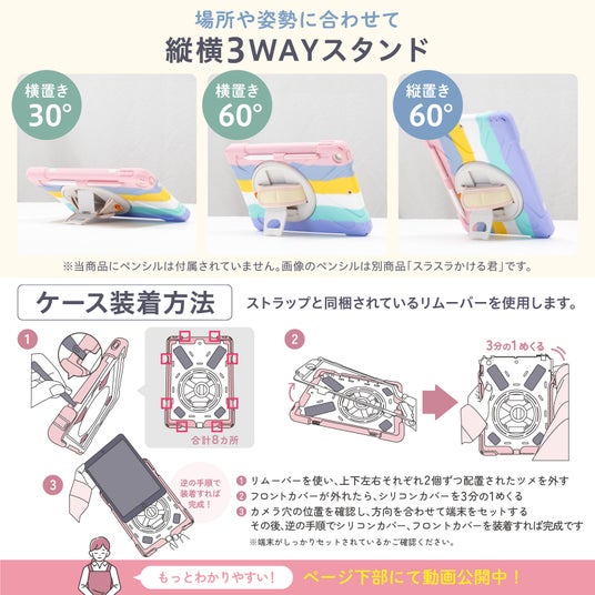 アイパッド10.2インチ 第9世代 第8世代 第7世代の3モデルに対応。斜め掛けできて持ち運びに便利なストラップ付き、かわいい・クールなデザインで学校、介護や医療の現場、建設現場など様々なシーンに