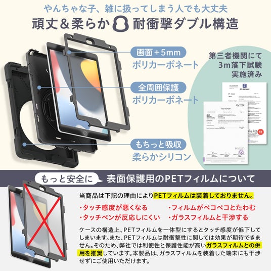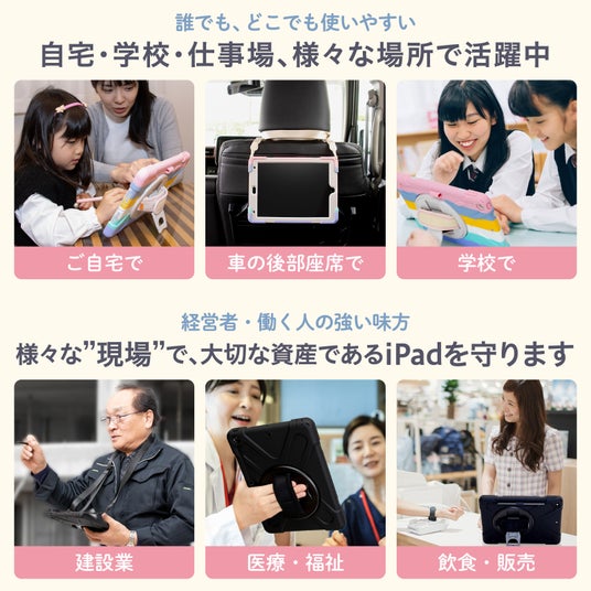 「子供が雑に扱うので破損が心配」「現場で働く従業員用に保護ケースがほしい」「会社のiPad、何も気にせず使いたい」そんな方にピッタリのiPadケースです。