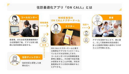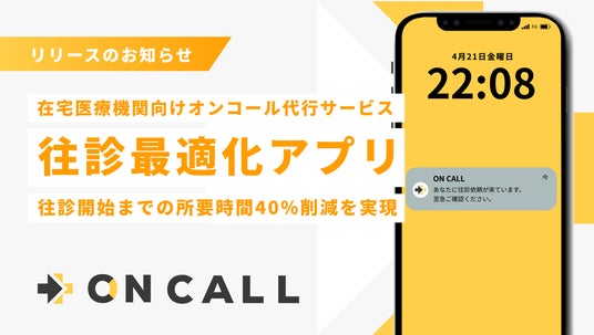 【在宅医療】株式会社on call、オンコール代行サービスにおける医師向けの往診最適化アプリ『ON CALL』の試験運用を実施。往診開始までの所要時間40%削減を実現。