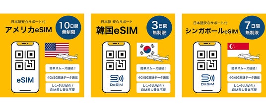 台湾、シンガポール、アメリカ、日本、韓国向け利用プランのeSIMをAmazonで販売開始。出発前だけでなく現地到着後に購入でも利用可能で、公式LINEでユーザの利用方法をサポート。