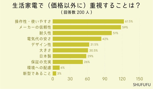 生活家電で(価格以外に)重視することは?(複数選択可)