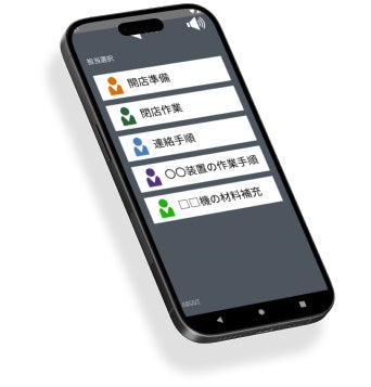 複雑な業務マニュアルをスマホアプリ化!お手元のスマートフォンからいつでも簡単にマニュアル手順が確認できます。カスタマイズ作成のため、独自マニュアルにも対応可能です。