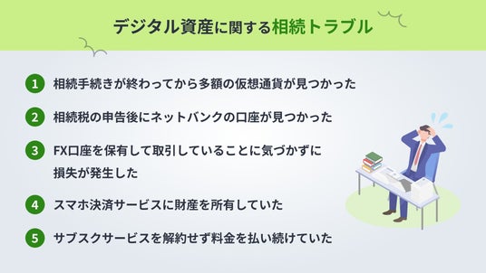 高齢者もデジタル資産を持ち、スマートフォンを使いこなす現代、手軽に決済や取引ができて便利になった一方、次のような相続トラブルも発生しています。