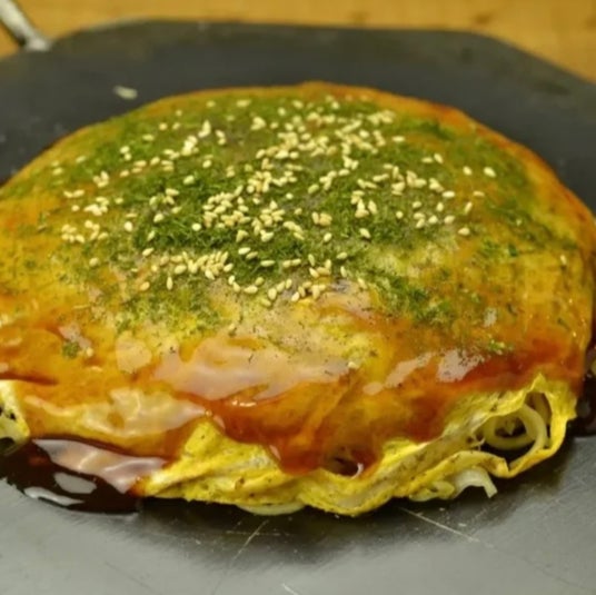 たっぷりキャベツ、こだわり卵とお好み焼き専用麺を使用して情熱こめて 一枚一枚丁寧に焼き上げています。広島焼き定番の肉玉そばをご家庭で楽し むことができます。