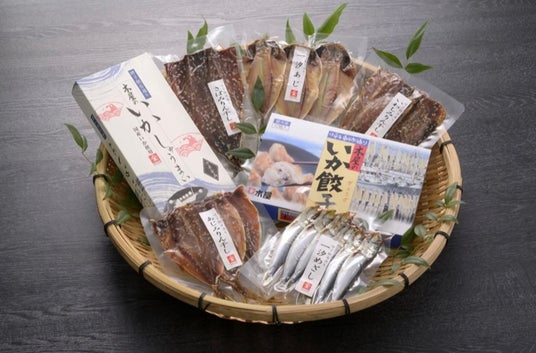 日本三大朝市のひとつ「呼子の朝市」から玄界灘の香りをお届けします。あじひらき、さばみりん干し、いかぎょうざなどがセットになったお土産やご贈答にも最適の商品です。