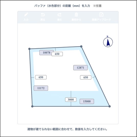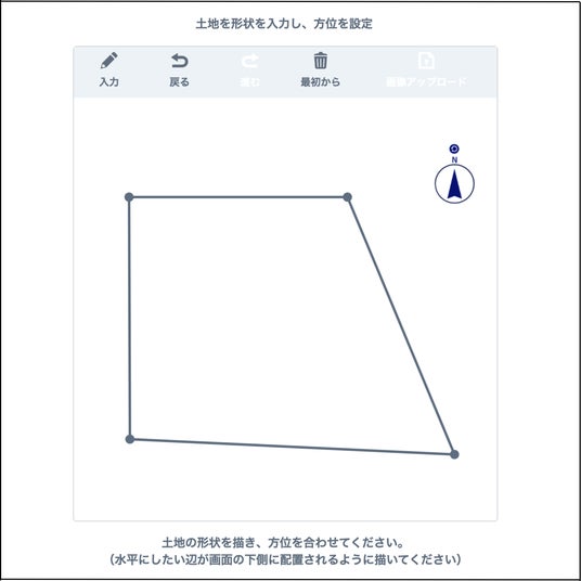 建設予定地の形状を敷地図や不動産チラシからトレースするか、手書きで書くと、その土地に合うプラン(間取り)のシミュレーションを誰でも容易に行えます。(所要時間約3分)