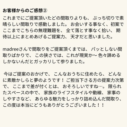 依頼者の82%の方が満足している「madree(マドリー)」の間取り