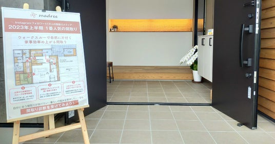 「madreeデータバンク」を使った「間取り診断」イベントを実施できます。「間取り」という切り口で、他社にて満足な間取りが出ずに会社を決めかねているお客様に来場してもらえます。イベント出展時のパネルなど広報ツールも幅広く提供しています。