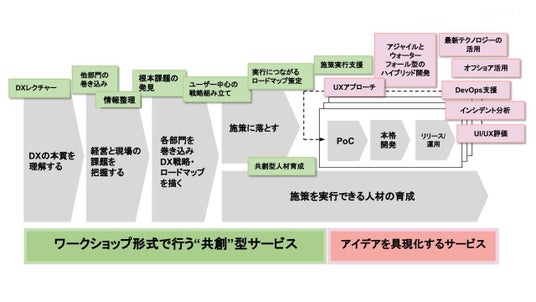 DNTIは、大手コンサルティングファーム出身メンバーによって設立され、創業より一貫して、既存の業務やビジネスのデジタル化に留まらず 「人の体験価値」から新たなビジネスモデルを創造することを重要視してまいりました。また、企業が継続的に本質的なDXを実現し事業成長を遂げるためには内製化が不可欠という考えのもと、共創型のプロセスを通じた社内DX人材の育成サービスと、共創型でアイデアを具現化する「デジタルイノベーション工房」サービス、基幹システム(ERP)クラウド化とスマート化の3つのサービスで企業支援を行っています。現在、年間約200名以上にDXワークショップを提供するほか、年間50社以上のアイデアの実現を支援しています。