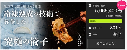 Makuake達成率5066%、フードランキング1位を獲得した冷凍熟成餃子「-ond°(オンド)」3月1日発売開始。