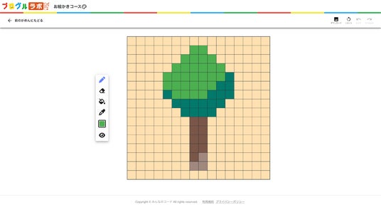 「お絵かきコース」では、児童・生徒が画面上でドット絵を描くことにより、デジタル表現について学ぶことができます。