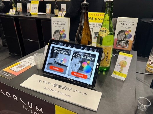 「KAORIUM for Sake」はAIが客様に合ったお酒の説明や提案をするため、最小限の人材でホテルや飲食店でのお客様の体験価値向上を目指しており、今回、ホテルや飲食店に従事する方々に、生産性向上・人手不足対策として認知していただきたく本展示会に出展いたしました。