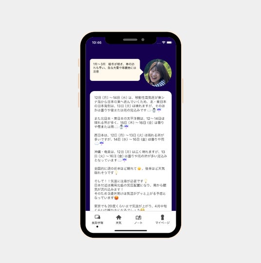 「私の実家は東北の畜産農家です。私自身も手伝いをしているのですが、冬は寒さで水道管が凍ることも。そうした問題を防ぐためにも天気は毎日チェックします。多くの農家の助けになるようなアプリに育てていきたいと思っています」