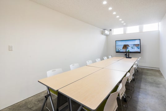会議室は最大12名まで利用可能で、モニターやホワイトボード完備。会議や打ち合わせはもちろん、ワークショップやグループワークの場所としてもご利用いただけます。