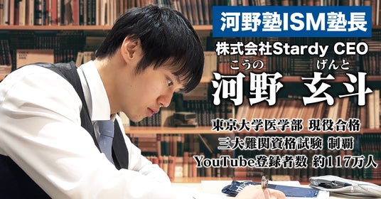 河野玄斗は、東京大学理科三類医学部に現役合格。在学中に司法試験に合格し、医師国家試験にも合格。2022年、公認会計士に挑戦し11月資格を取得。「東大医学部の神能」と呼ばれた東大医学部在学中から教育系ユーチューバーとして「Stardy河野玄斗の神授業」をスタート。タレントとしても各メディアに出演。河野玄斗のYouTubeは登録者数117万人(2024年2月現在)を誇り、今も自ら学び挑戦する姿に多くの支持を得ています。