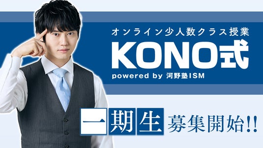 圧倒的な成績向上を目指せるオンライン少人数クラス授業『KONO式』入塾者募集を開始します。