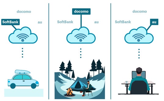 Vsim技術を活用すると国内3大キャリアの通信が利用可能となります。