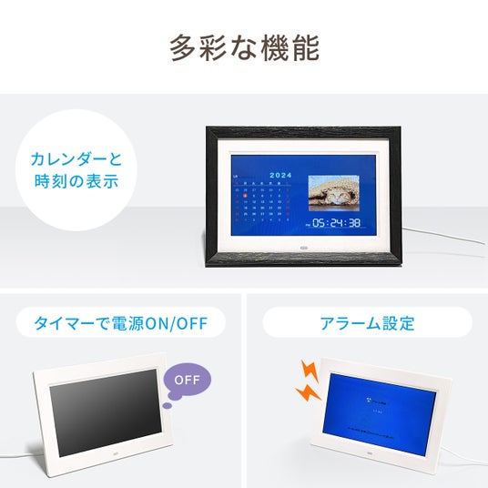 本製品は、SDカードまたはUSBメモリを接続するだけで、写真のスライドショーを楽しめるデジタルフォトフレームです。