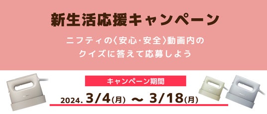 ニフティ株式会社(本社:東京都新宿区、代表取締役社長:前島 一就、以下当社)は、当社の「安心・安全」に関する取り組みを紹介する特設サイトにて、本日3月4日(月)から「新生活応援キャンペーン」を実施します。