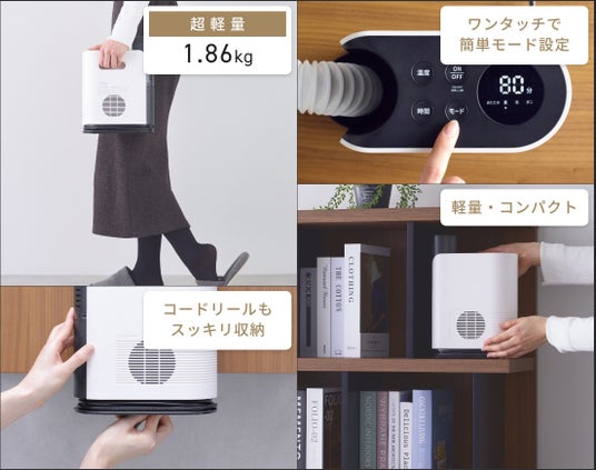 超軽量の1.86kgでありながら、ワンタッチで簡単にモード設定が可能で、コードリールもスッキリ収納できる、軽量かつコンパクトでスマートなデザインが魅力です。