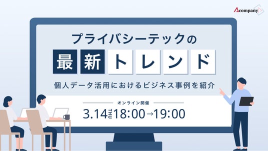 データクリーンルームを提供する株式会社Acompany(アカンパニー、愛知県名古屋市西区、代表取締役CEO 高橋亮祐、以下Acompany)は、プライバシーテックの最新トレンドやその活用事例を紹介するウェビナー「プライバシーテックの最新トレンド~個人データ活用におけるビジネス事例を紹介~」を、3月14日(木)18:00より開催します。