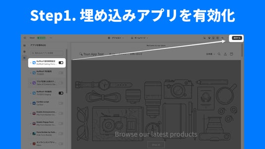 セットアップはたったの3ステップで、「埋め込みアプリを有効化」し、「販売期間ルールを作成」、「販売期間ルールを商品に適用する」だけです。