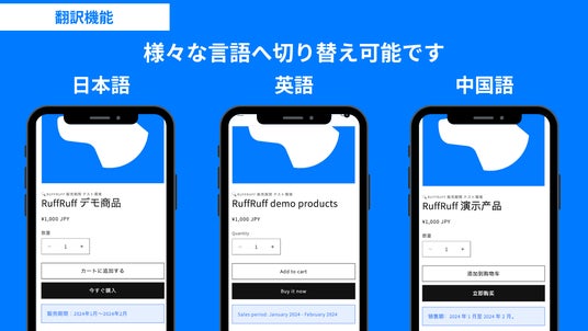 「RuffRuff 予約販売」はオンラインストアで予約商品の登録および販売を実現し、在庫切れや新発売前に発生する「機会損失の削減」をサポートします。本アプリ1つで「期間限定セール」や「毎週水曜日だけ販売」、「毎月5のつく日だけ販売」「会員限定セール」、「VIP会員限定販売」、「後払い」、「1人1個まで販売」などの様々な販売を実現できます。