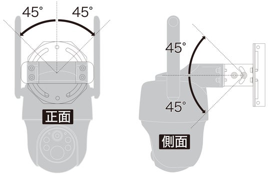 ・角度調整範囲 上下に各45˚、左右に各45˚