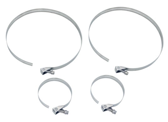 取り付けベルトは直径60cmまでの太さに対応します。柔らかく丈夫な材質で、いびつな樹木でも、角ばった支柱でもフィットします。ステンレス製の取り付けバンドも付属し、設置条件に合わせてお選びいただけます。