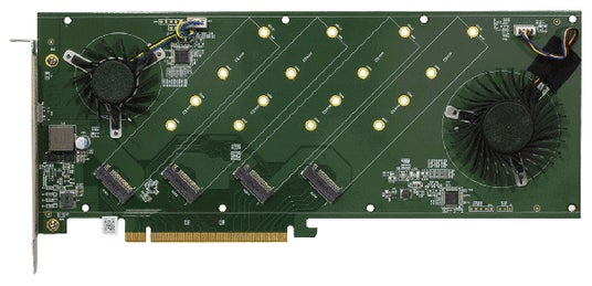 『PCIe GEN4 QUAD M.2 RISER CARD』は、PCI Express 4.0接続による高速データ転送が可能な、M.2 NVMe SSD x4を搭載できる変換基板です。