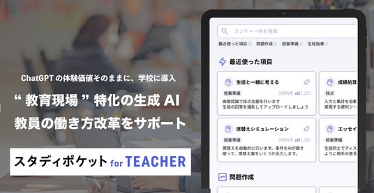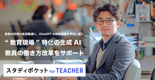 プロンプト不要、学校教員の校務を生成AIで支援「スタディポケット for TEACHER」発表、"校務GPT" としての活用で、教員の負担軽減・働き方改革をサポート