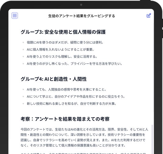 教員が日常的に使用するシステムと同等の使い勝手で、生徒にも適切な生成AIの利活用を推進することができます。