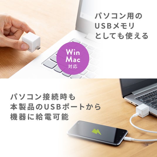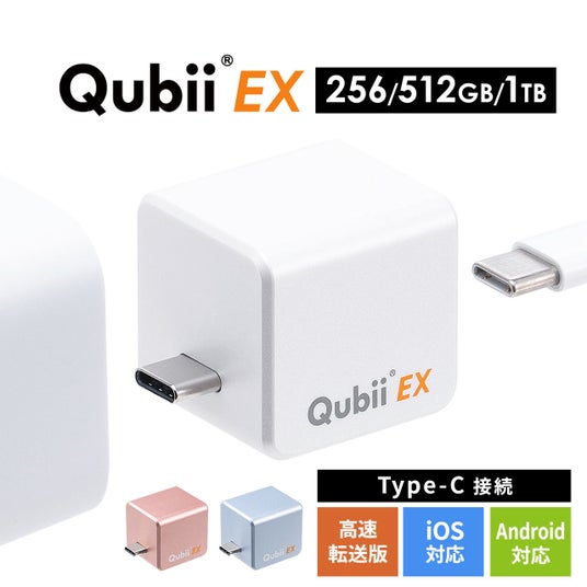 Qubii EX Type-C接続 PD60W 高速充電 iOS Android 自動バックアップ パソコン不要 容量不足解消 iPad iPhone15対応