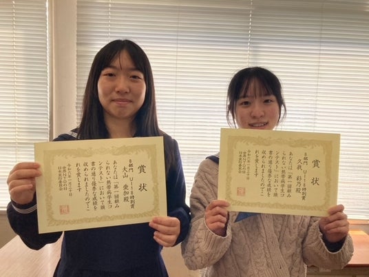 (写真左から)日本製薬工業協会賞の賞状を手にする廣野慧香氏、宮嵜彩歌氏=2024年3月5日、受賞者提供日本製薬工業協会賞「いっしょに届けたい、くすりと想い」受賞したのは東京学芸大学附属国際中等教育学校3年の廣野慧香氏、宮嵜彩歌氏。日本の強みである医療技術と政府開発援助(ODA)を活かしつつ、支援国の特性や環境を配慮した持続可能性のある寄り添いのある支援が、日本への理解や信頼の獲得につながると訴えた点が評価されました。