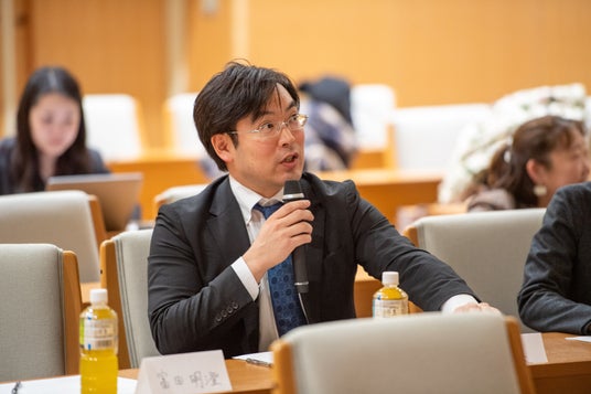 最終審査会で質問をする厚生労働省の岡田岳大氏=2024年1月28日、東京大学山上会館(東京都文京区)、千葉大輝氏撮影