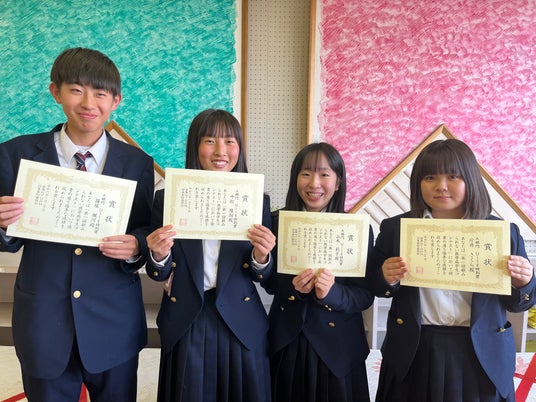 (写真左から)GHIT賞の賞状を手にする礒妃葵氏、魏悦航氏、古川結菜氏、只川伊澄氏=2024年3月4日、受賞者提供GHIT賞「パートナーシップを通じての課題解決」受賞したのは千葉県立幕張総合高等学校看護学科1年の礒妃葵氏、魏悦航氏、古川結菜氏、只川伊澄氏氏。NTDs制圧に向けた国際的な重要な取り組みである「ロンドン宣言」と「キガリ宣言」に着目し、発表しました。産官民などのパートナーが協力してNTDsに対して共に闘うことが必要性を言及した点が評価されました。