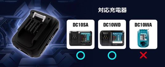 当互換バッテリーは、マキタ製の充電器(DC10SA / DC10WD)に適応しています。