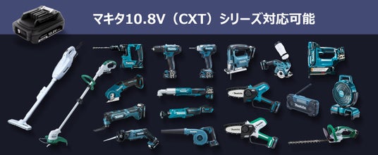 マキタ製10.8Vスライド式(CXT)シリーズの充電式クリーナーや充電式インパクトドライバ、充電式草刈機などの機種に対応可能です。