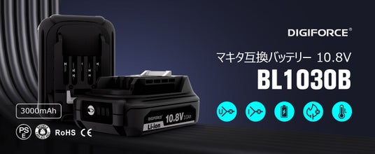 マキタ製10.8Vシリーズの電動工具等の作業効率が一段と向上!パワフルな活躍を約束する大容量の互換バッテリー(10.8V/3.0Ah)が、株式会社デジフォースより新登場。