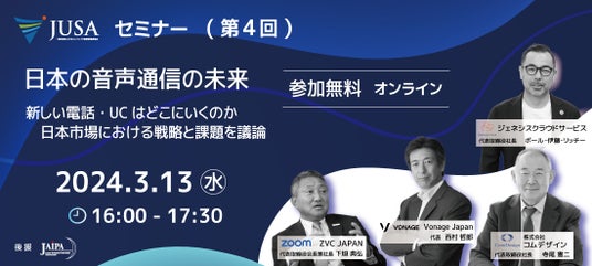 長い歴史を持つ電話サービスはインターネットやクラウドの技術と融合することでシームレスに統合されたユニファイド通信サービスへと進化しています。JUSAはユニファイド通信を市民の皆さんに安心してご利用頂けるように議論・活動しています。協会名: 一般社団法人 日本ユニファイド通信事業者協会(JUSA)https://jusa.jp/