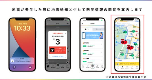 また、Wan!Passのペット情報と施設情報の照合機能などを活用し、表示された施設における避難時に必要な条件・現地での生活ルールやマナーを表示することで、視覚的に防災を理解できる体験設計を実現させる予定です。